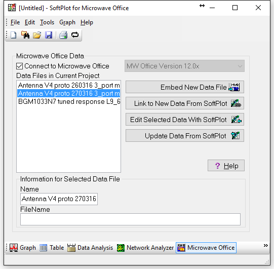 An evaluation copy of SoftPlot for Microwave Office can be downloaded from our Download Area. To activate the full instrument transfer functionality a password is required. This can be obtained by sending us an e-mail at