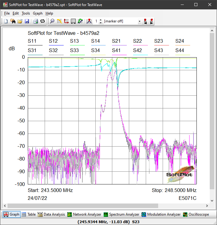 SoftPlot for TestWave is a separate executable that usually runs in the background, controlled by the TestWave user interfaces. It manages the GPIB, Serial, LAN and VISA connections to the instruments, and contains all the instrument-specific drivers. It can also be run independently for documenting RF measurements.