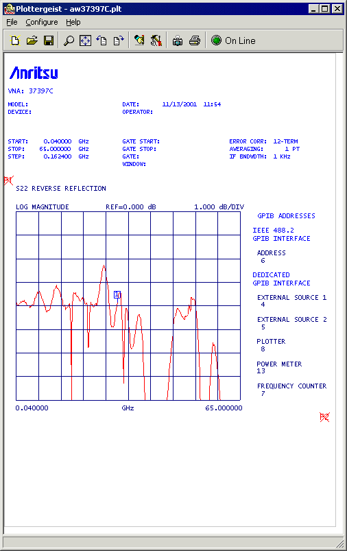 The following screen shots illustrate the type of graphics that can be captured and displayed by Plottergeist.